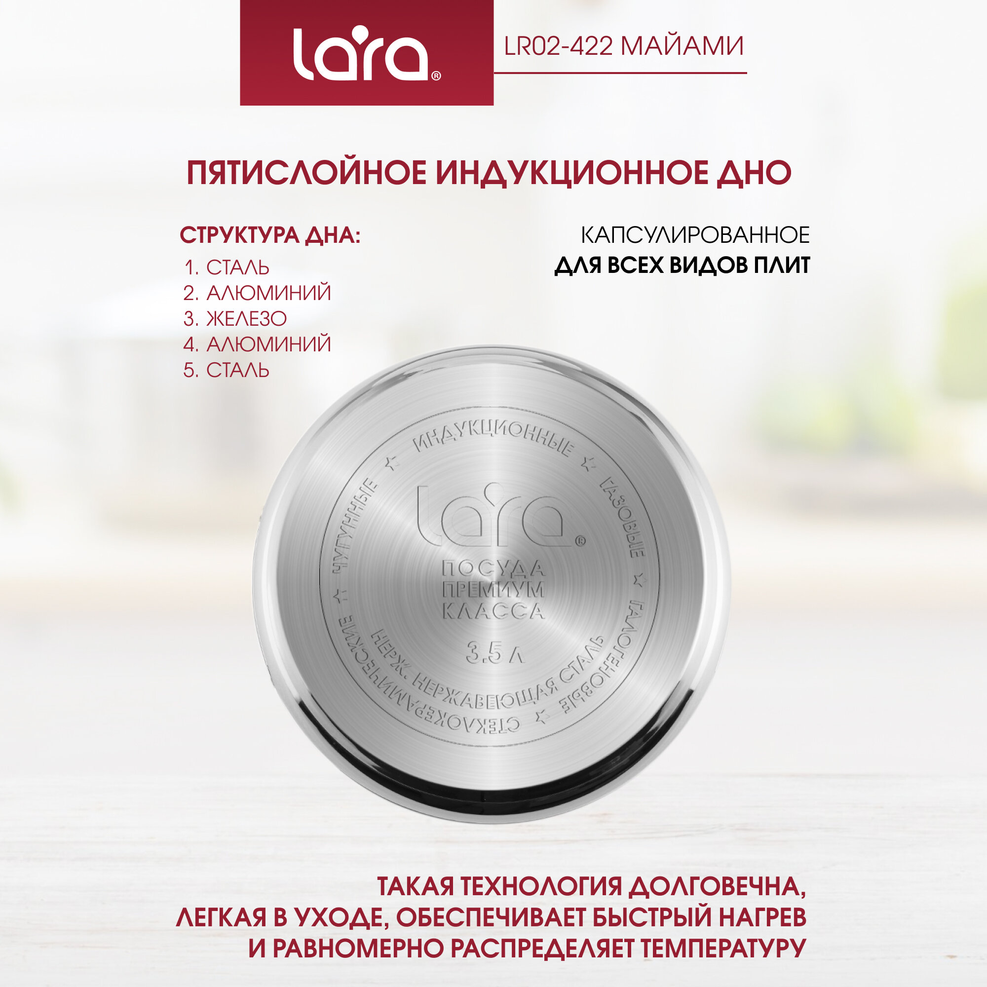 Купить Кастрюля LARA LR02-422 серия майами, нерж., 3,5л 20x11,5см, капс. 9-ступенч.дно, крышка, шкала
