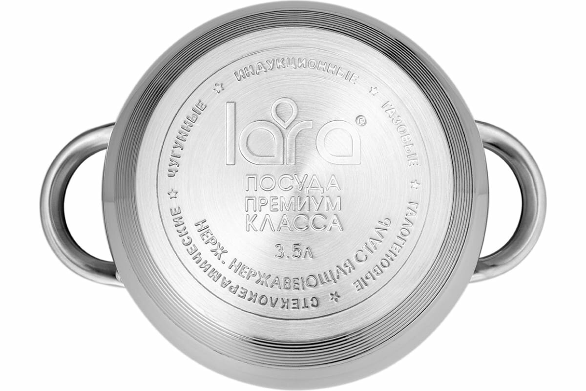LR02-422 Кастрюля LARA (нерж) серия <майами> 3,5л 20x11,5см, капс. 9-ступенч.дно, крышка, шкала