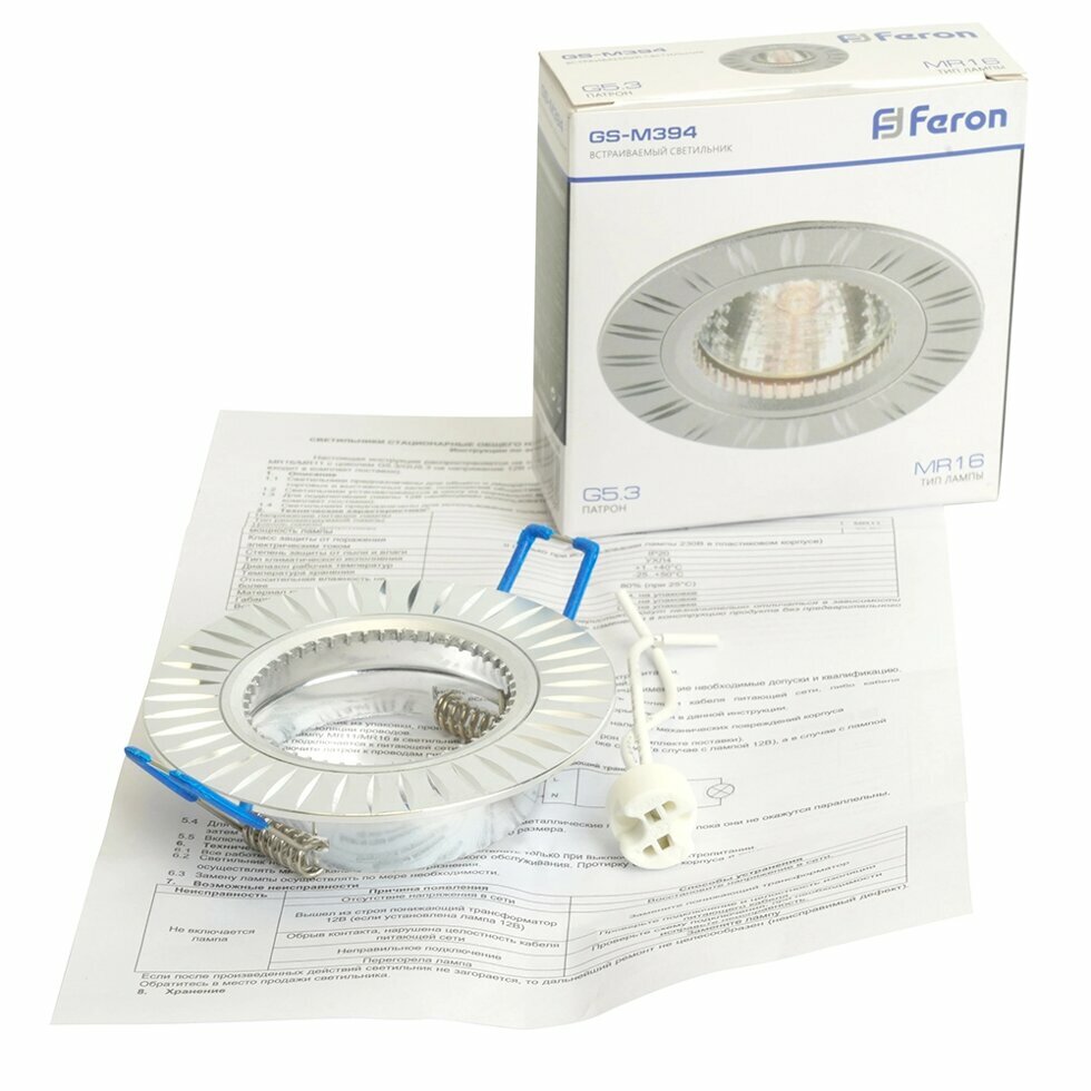 Светильник встраиваемый Feron GS-M394 потолочный MR16 G5.3 серебристый fr_17936