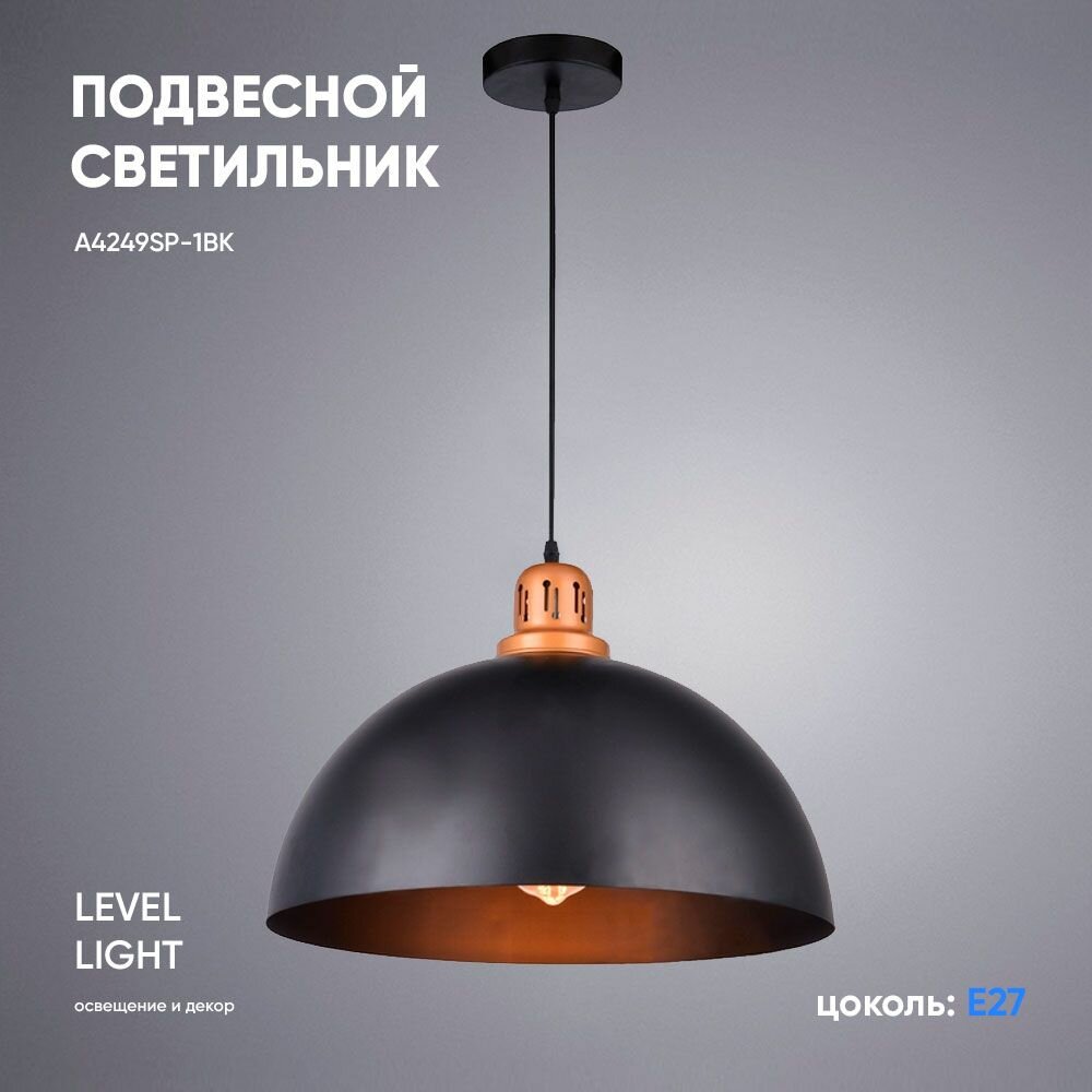 Подвесной светильник ArteLamp EURICA A4249SP-1BK, E27, 60 Вт, металл, черный, медный