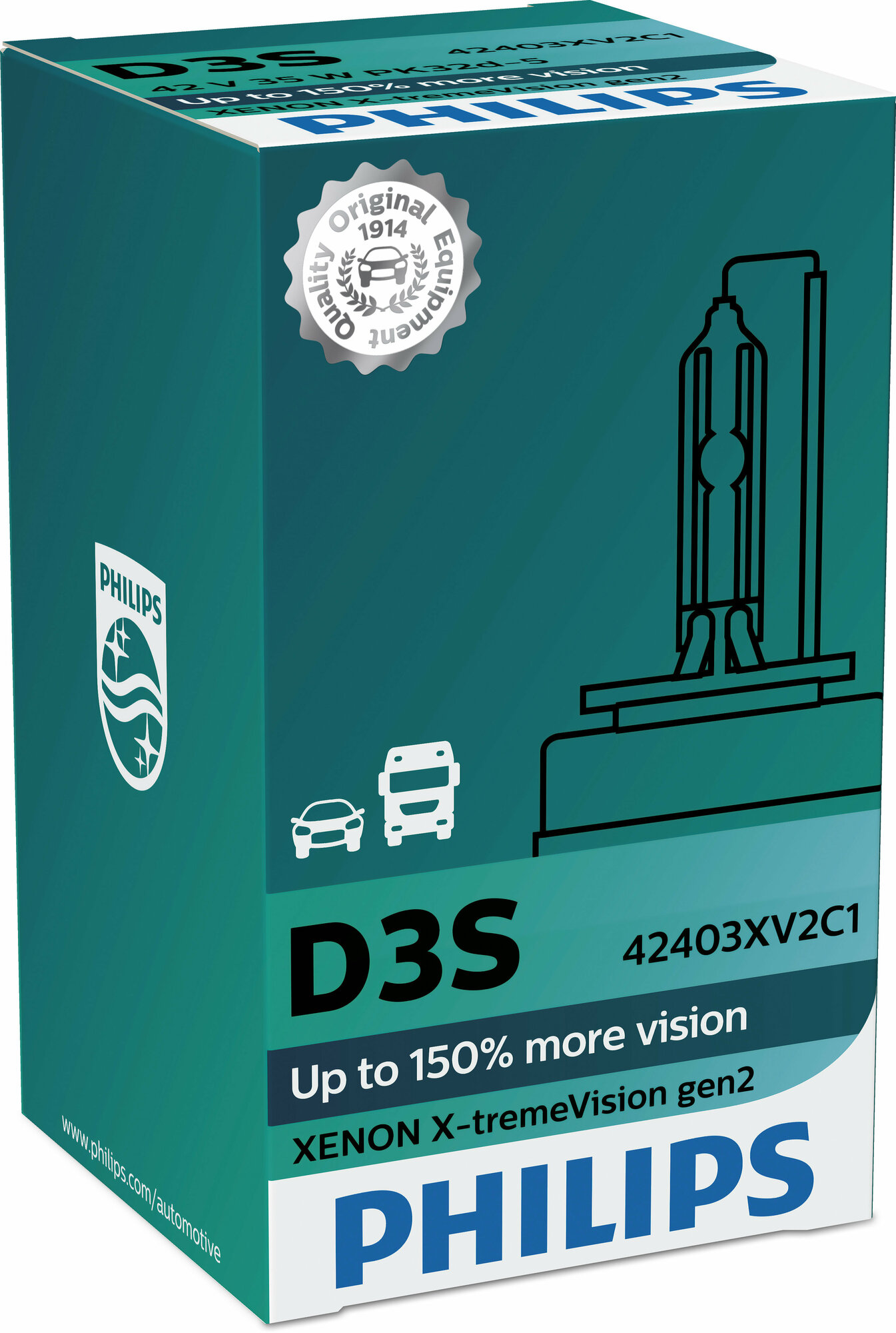 Лампа автомобильная PHILIPS X-tremeVision D3S 42V 35W +150 GEN2 PK32d-5 1 шт. PHILIPS-42403XV2C1