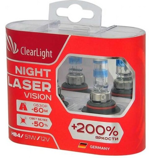 Лампа Clearlight HB4 12V-51W Night Laser Vision +200% Light (компл., 2 шт.)