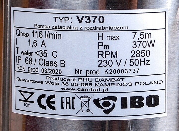 Фекальный насос IBO V 370
