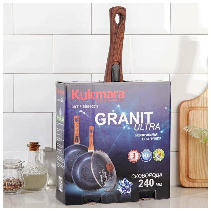 KUKMARA Сковорода Granit ultra, d26 см, стеклянная крышка, съёмная ручка, антипригарное покрытие