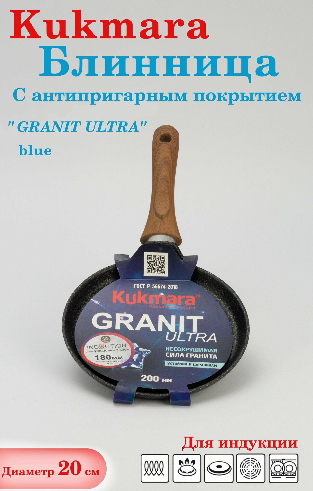 Kukmara Сковорода блинная 200мм с ручкой, АП линия "Granit Ultra"( Blue) , сбгг200а интересное: