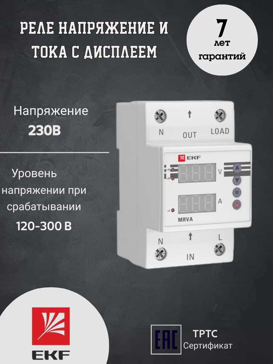 MRVA-50A Реле напряжения и тока EKF PROxima MRVA 50А с дисплеем