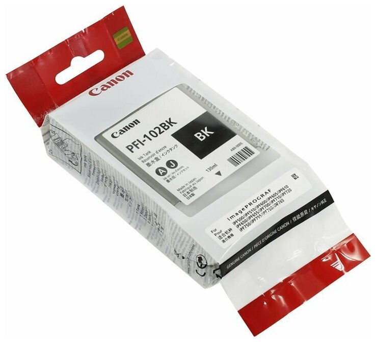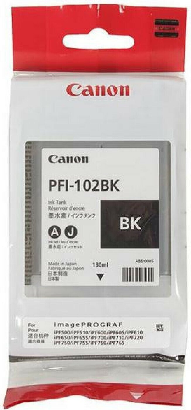 Картридж Canon PFI-102Bk черный для iPF500/iPF510/iPF600/iPF605/iPF610/iPF700/iPF710/iPF720. Объем 130 мл.