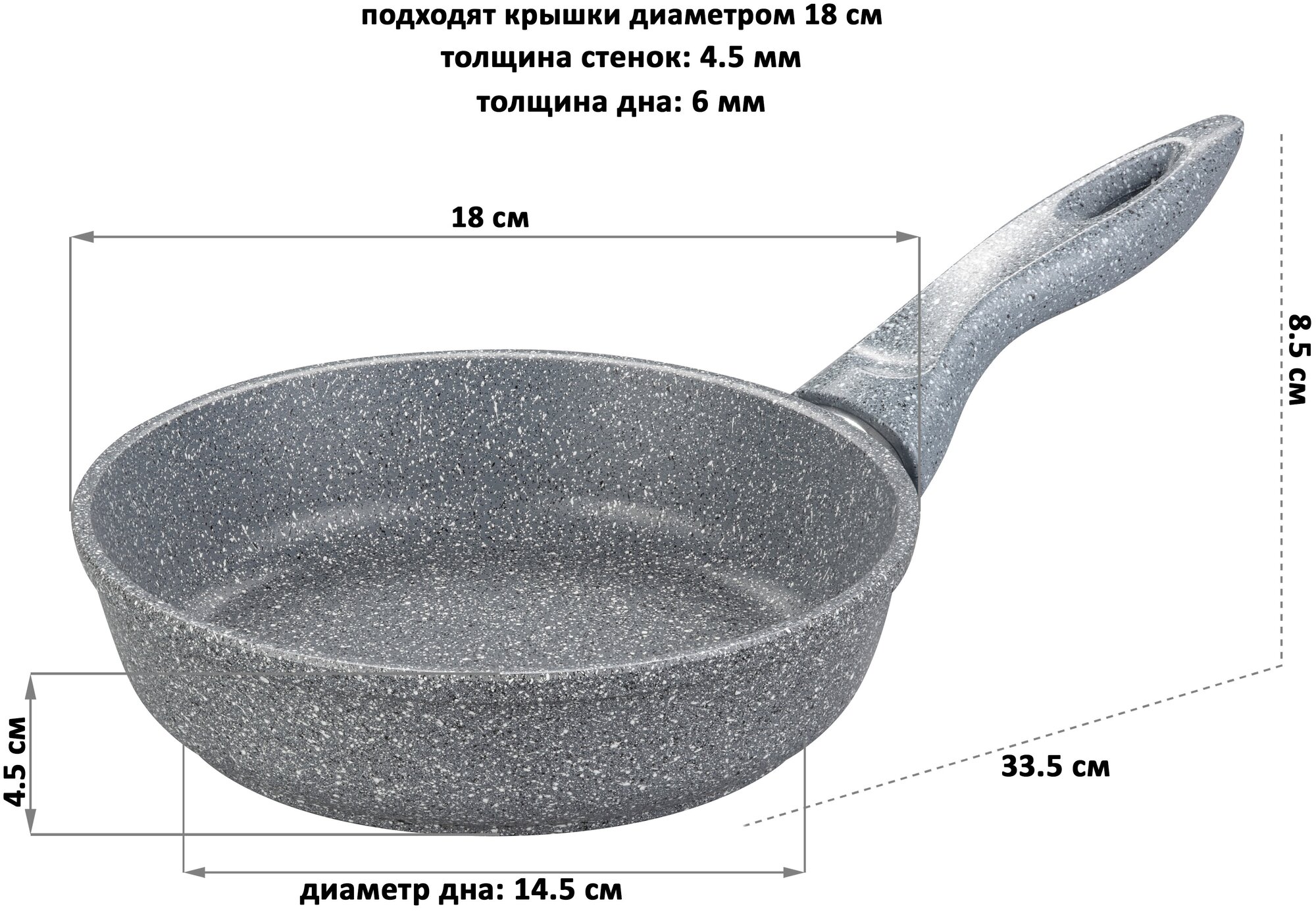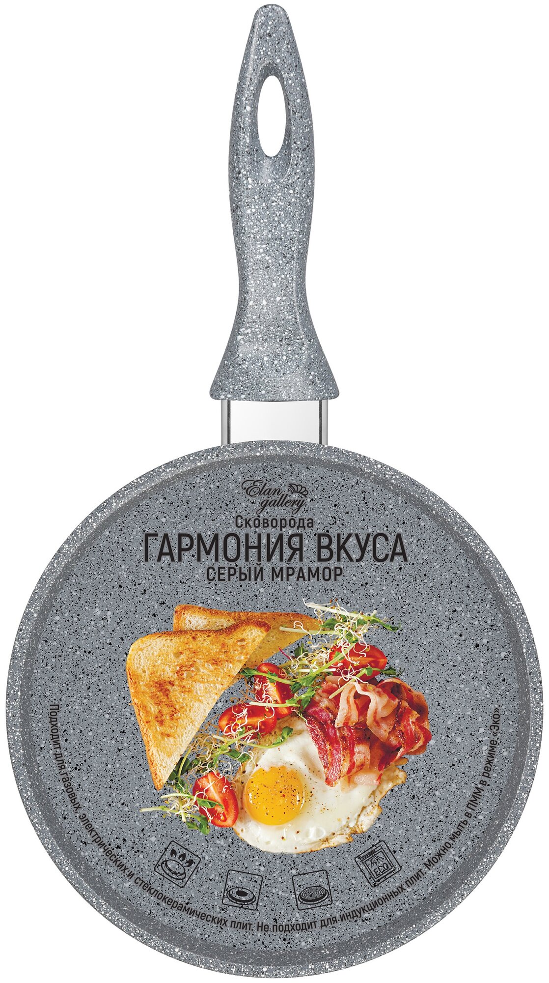 Сковорода глубокая 18 см Elan Gallery Гармония Вкуса Серый мрамор без крышки, несъёмная ручка . интересное: