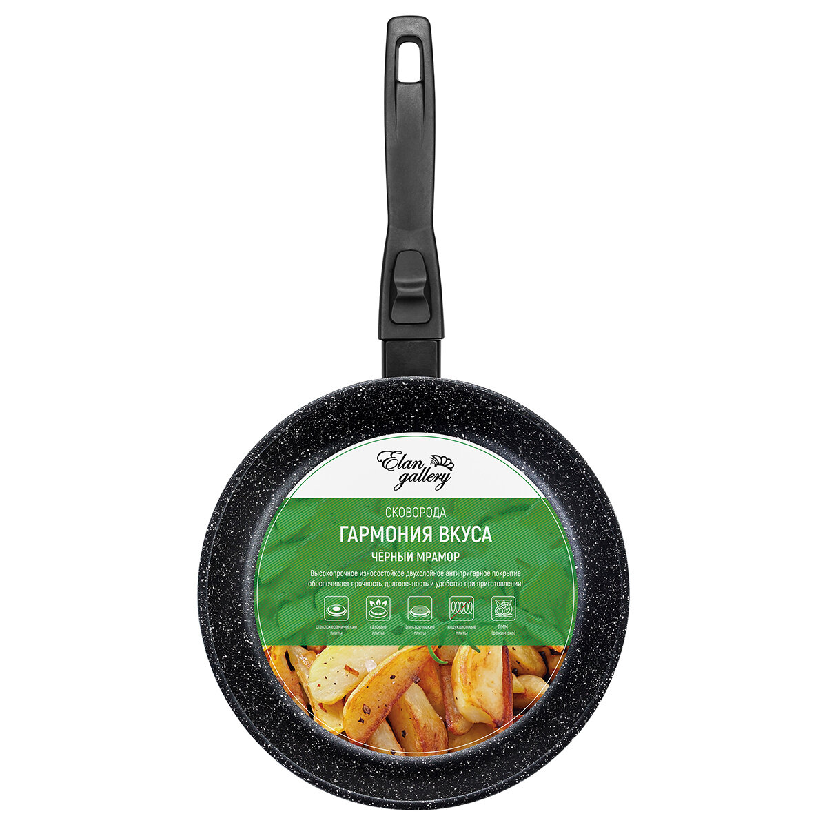 Сковорода глубокая 22 см гармония вкуса "Черный мрамор" без крышки, съемная ручка, 43*23*9 см интересное: