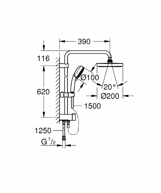 Душевая система GROHE New Tempesta Cosmopolitan 200 (без смесителя), хром (27394002)