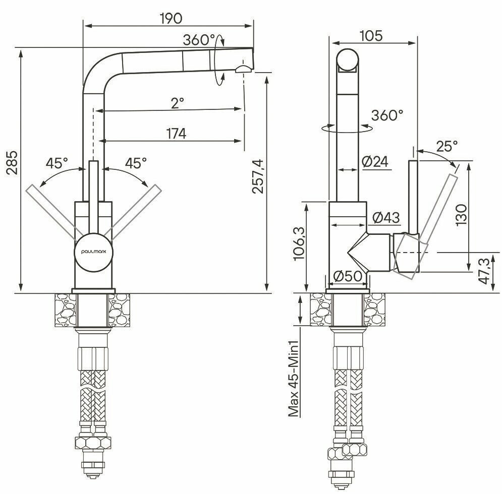 Смесители для кухни Paulmark HONNER, смеситель, хром