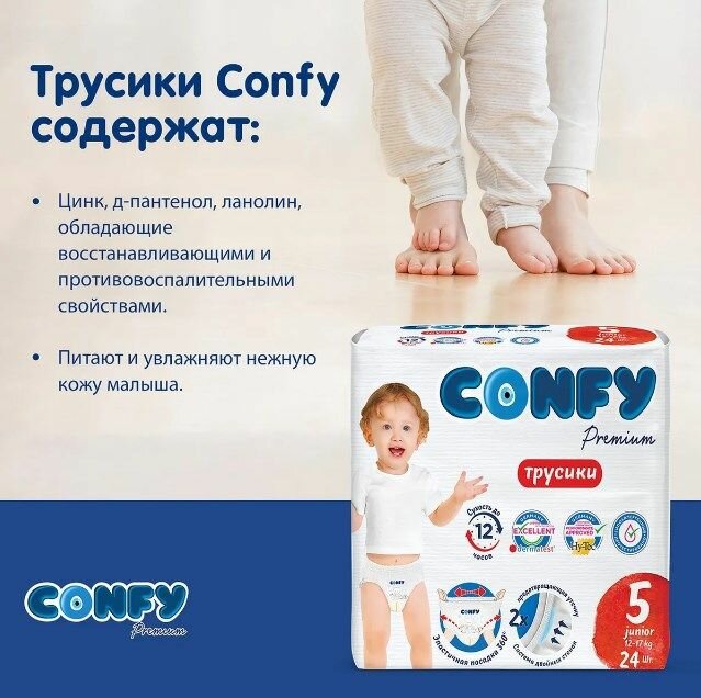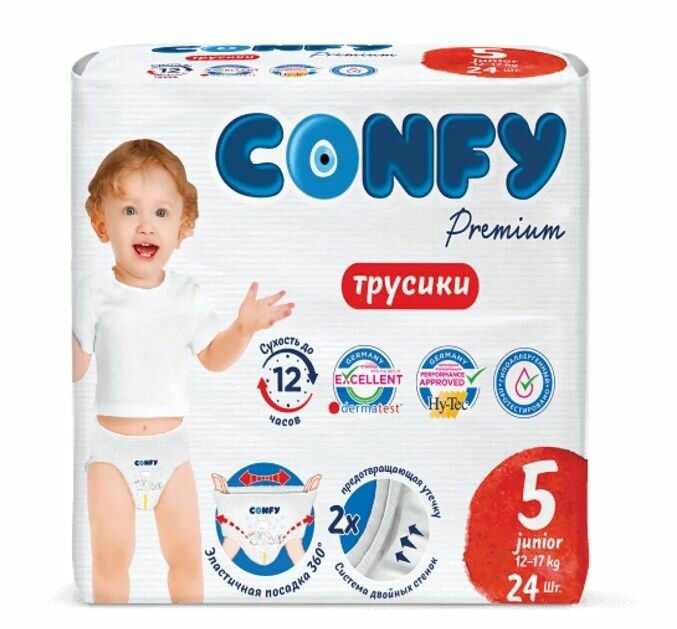 Подгузники трусики Confy Premium Junior, детские для мальчиков и девочек, 5 размер 12-17 кг, 24 шт