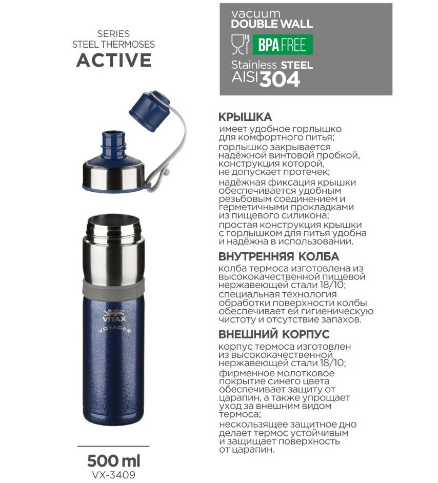 Термобутылка Vitax VX-3409, 500мл интересное: