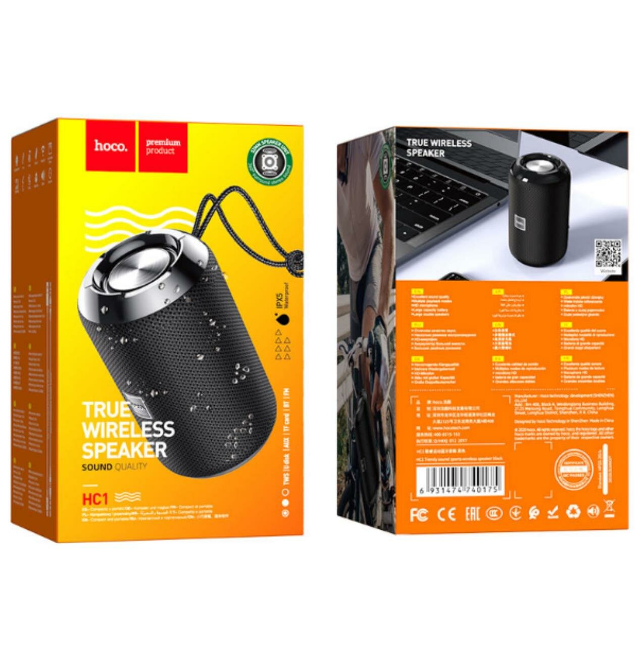 Bluetooth колонка HOCO HC1 Trendy BT5.0, 5W, AUX/TWS/FM/microSD/USB, IPX5 (черный)