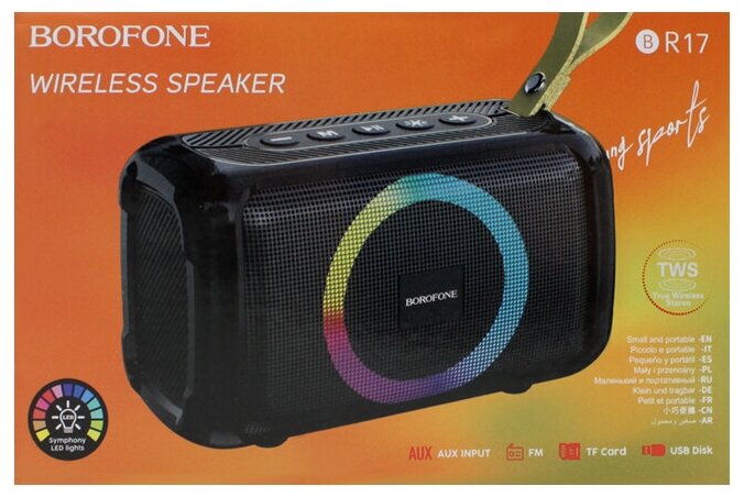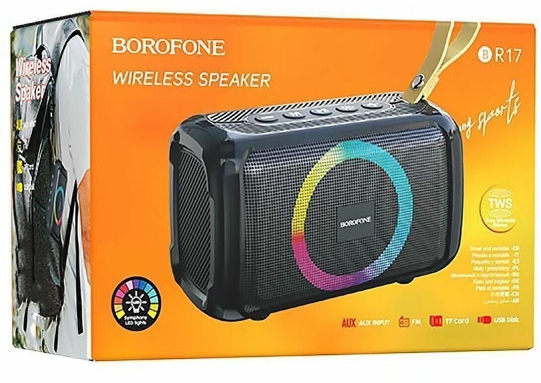 Колонка Borofone BR17 LED BT/microSD/USB/AUX 1200mAh черная