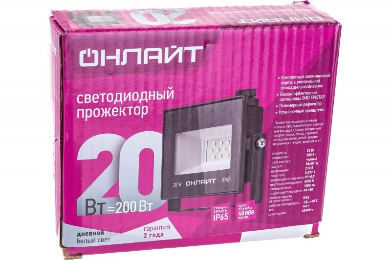 Прожектор светодиодный ДО-20w 6000К 1600Лм IP65 онлайт (61949 OFL)