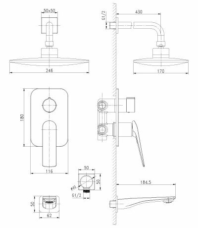 | Комплектация | встраиваемый наполнитель для ванны со скрытым аэратором Neoperl® Slim Air / керамический картридж Sedal® 35 мм / трехпозиционный картриджный переключатель / верхняя поворотная душевая лейка «Тропический дождь» 170х246 мм / 1-функциональная лейка 50х143 мм / настенное поворотное крепление для лейки / душевой шланг 2 м / подключение для душевого шланга / металлическая рукоятка |
