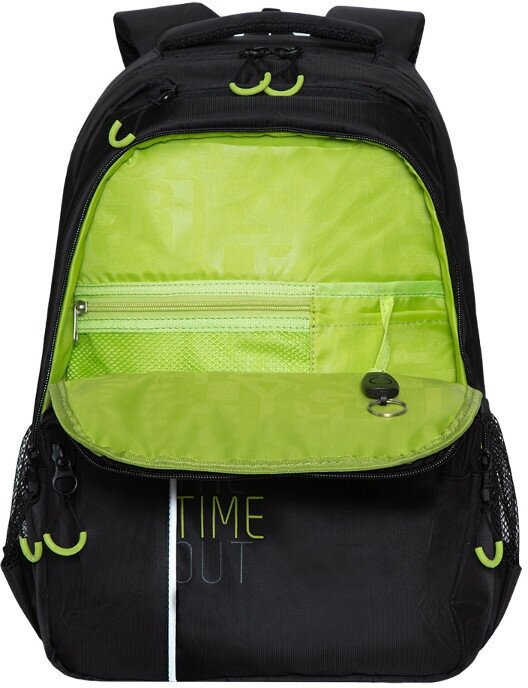 Школьный рюкзак с ортопедической спинкой GRIZZLY RU-030-31 черный - салатовый, грудная стяжка, 2 отделения, 845грамм, 45x32x23см
