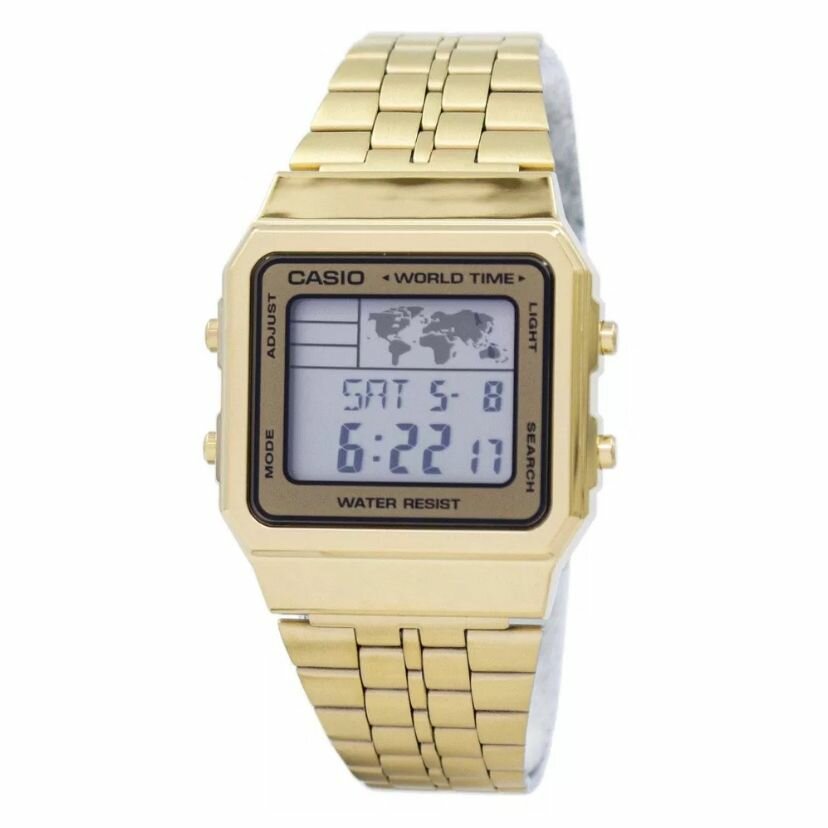 Наручные часы CASIO A-500WGA-9E мужские, кварцевые, будильник, секундомер, таймер обратного отсчета, водонепроницаемые, подсветка дисплея, золотой