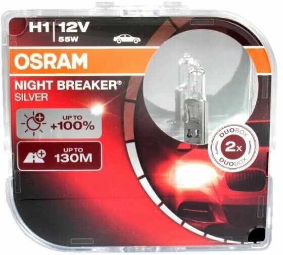 Лампа H7 12v 55вт Osram +100% Серебр.Диз. Night Breaker Silver (2шт) Duobox O-64210nbs2(Euro) /64210nbs-Hcb Osram арт. 64210N...