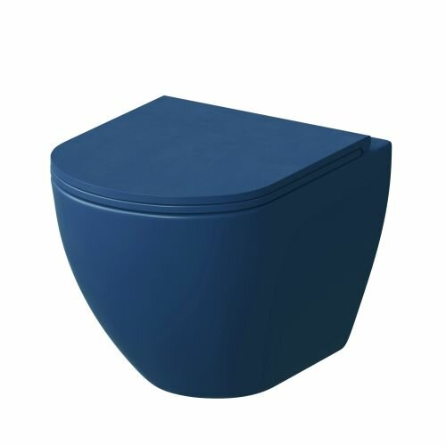Унитаз подвесной безободковый с тонкой крышкой Grossman GR-4455BLMS синий матовый (485*360*375)