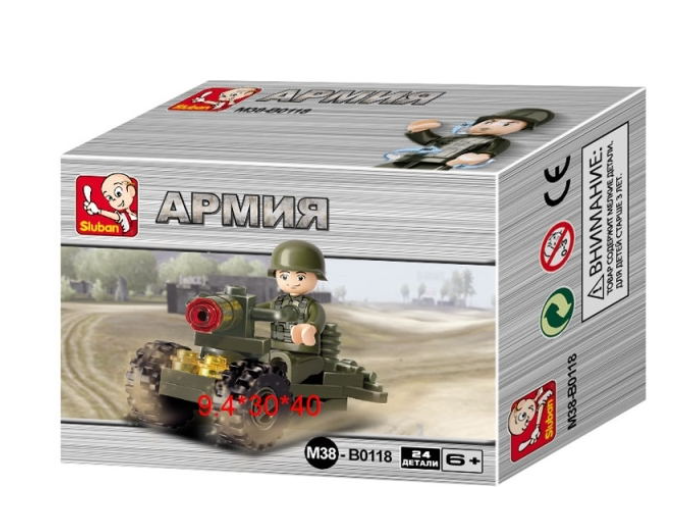 Купить Sluban Конструктор Военная техника Пушка 24 детали M38-B0118 с 6 лет
