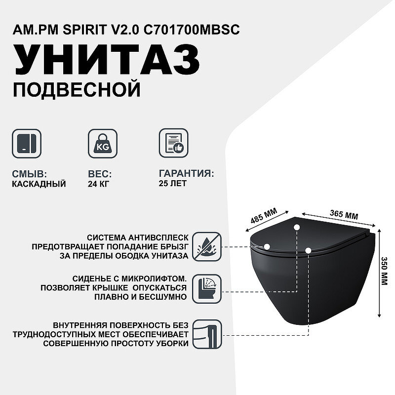 Унитаз подвесной AM.PM Spirit V2.0 C701700MBSC подвесной, с сиденьем микролифт, цвет черный матовый