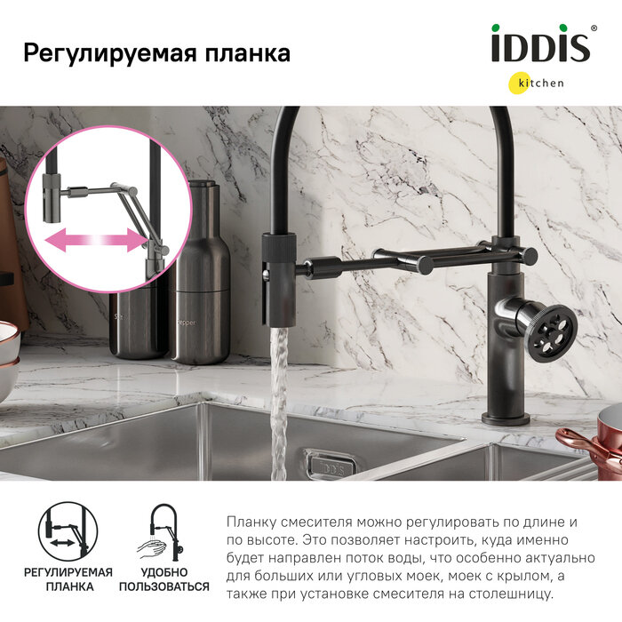 Смеситель для кухни с гибким изливом, графит, Grange, IDDIS, GRAGMFLi05