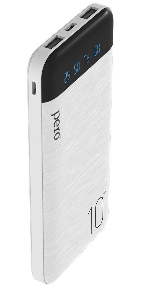 Внешний аккумулятор Pero Pb03, 10000 мАч, 2 Usb, 2.1 А, индикатор, белый Pero 9568360