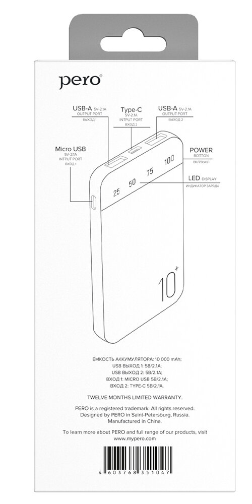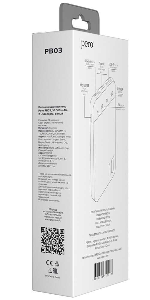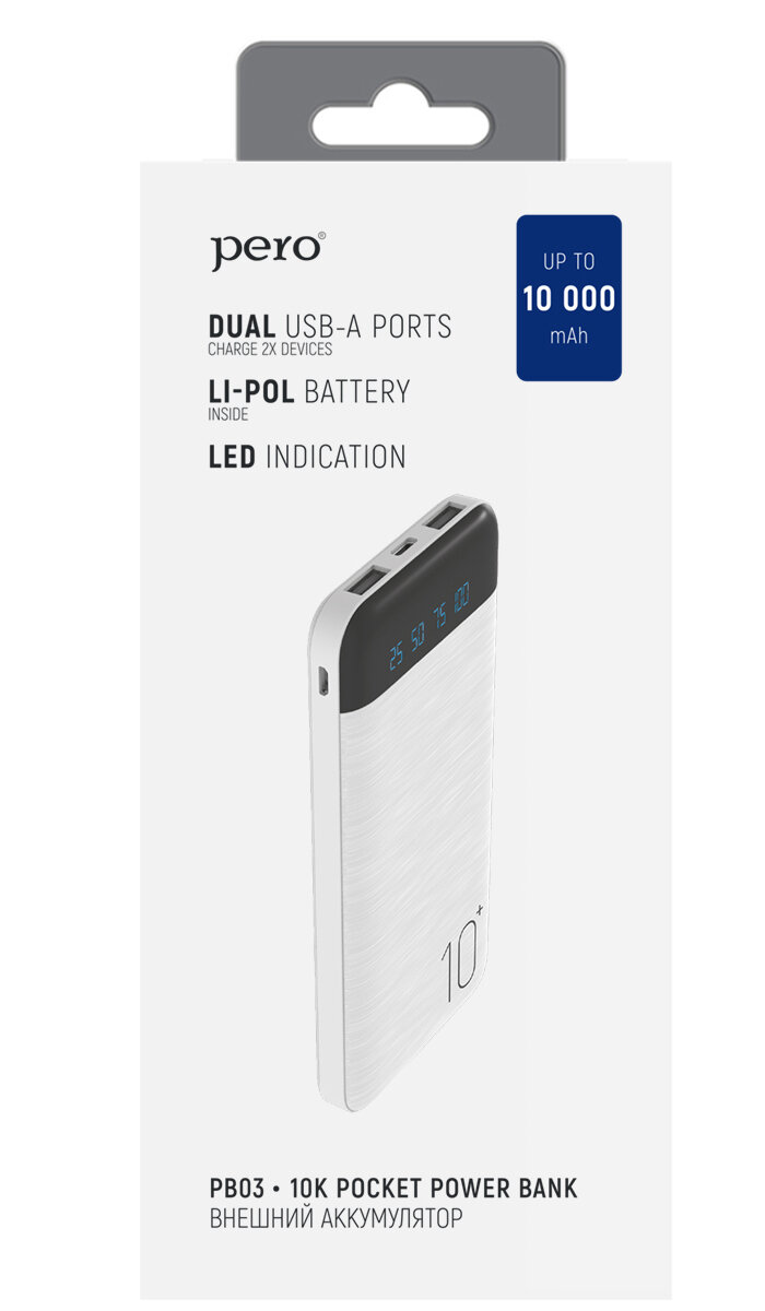 Ниже Вы можете прочитать отзывы на Внешний аккумулятор PERO PB03 10000 mAh, Li-Pol, output 2xUSB-A 2.1A, белый, ознакомится с подробными характеристиками, посмотреть интересные обзоры и фотографии на Внешний аккумулятор PERO PB03 10000 mAh, Li-Pol, output 2xUSB-A 2.1A, белый.