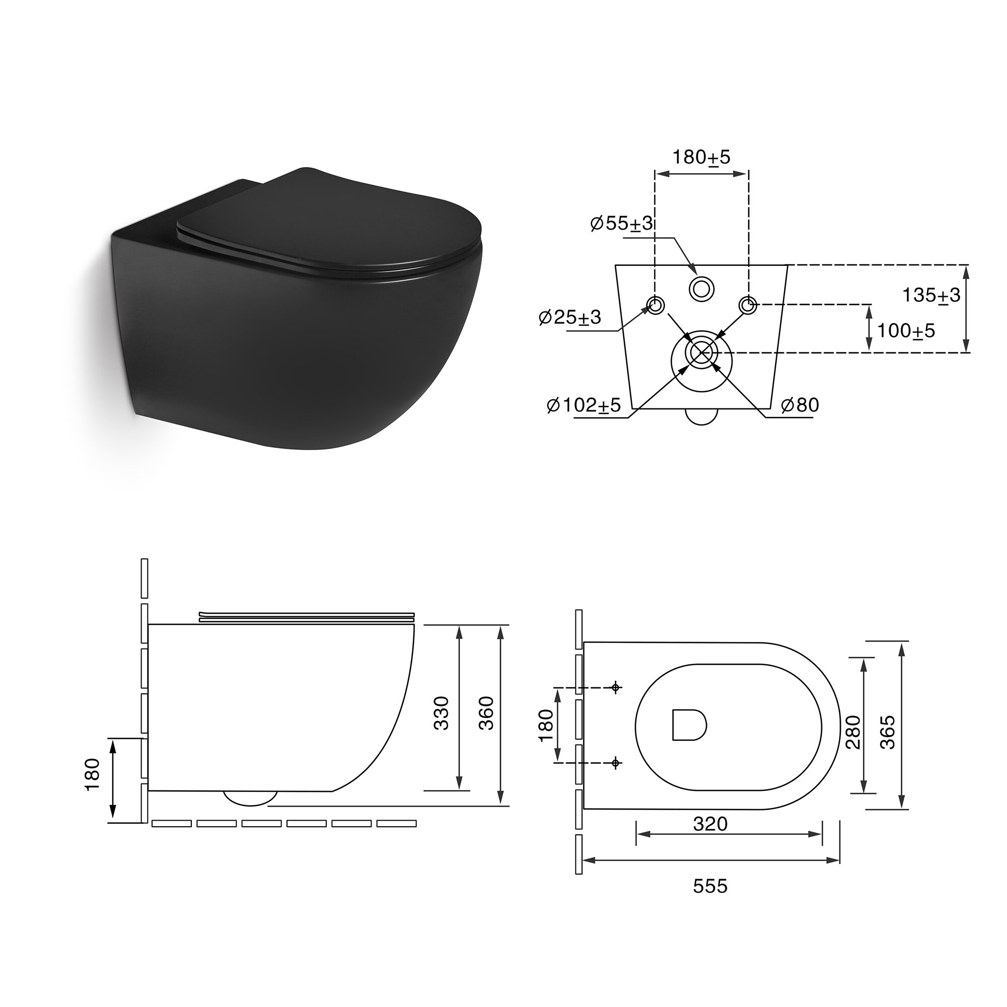 Унитаз подвесной, безободковый, черный/матовый, сиденье микролифт SantiLine SL-5002MB