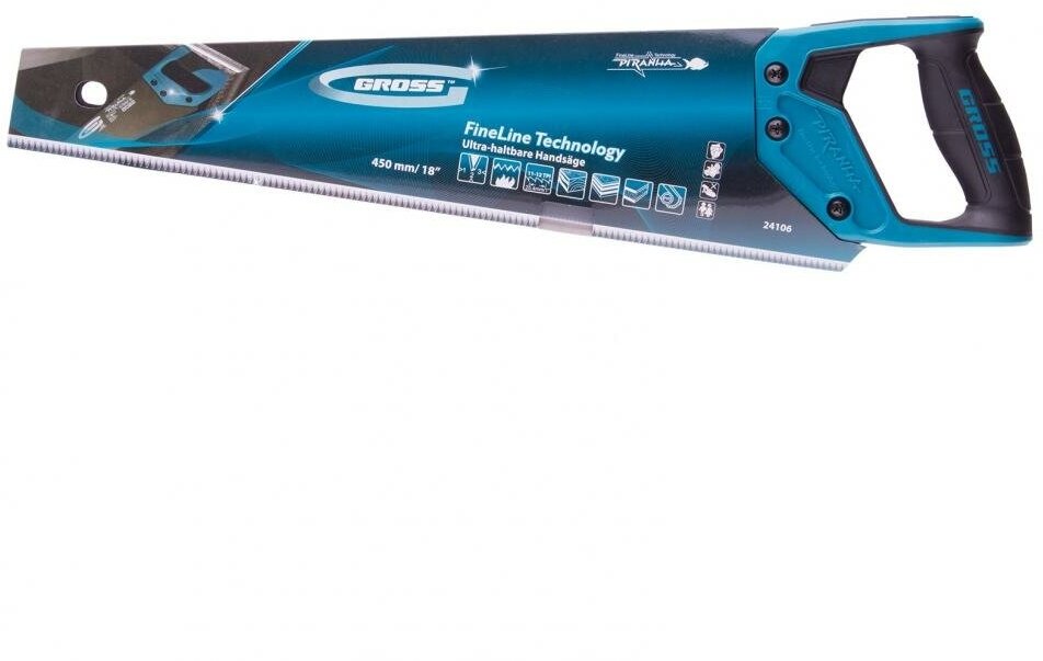 Ножовка по дереву GROSS PIRANHA 450 мм,11-12 TPI,зуб-3D,кал.зуб,тефл.покр.полотна,2-х комп.рук-ка 24106