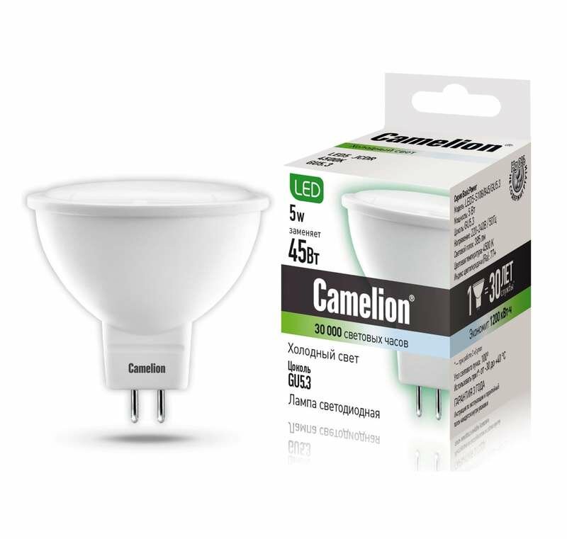 Светодиодная лампа Camelion LED5-S108/845/GU5.3 интересное: