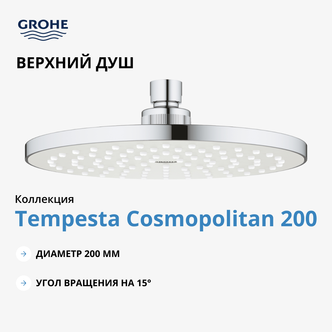 СохранитьЛейка верхнего душа Grohe Tempesta Cosmopolitan 27541001 интересное: