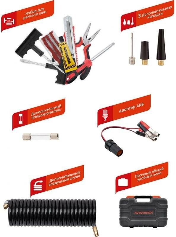 Двухцилиндровый компрессор с набором для ремонта колес AUTOVIRAZH AV-010890 подарок на день рождения мужчине, любимому, папе, дедушке, парню