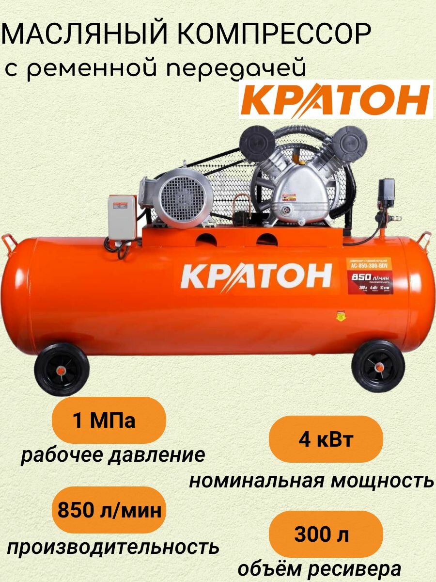 Масляный компрессор с ременным приводом Кратон AC-850-300-BDV, 3 01 01 045