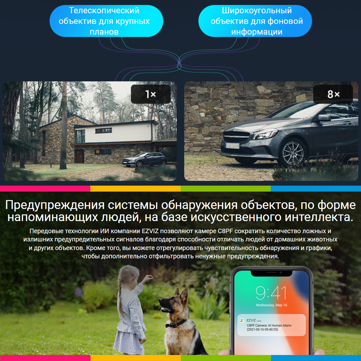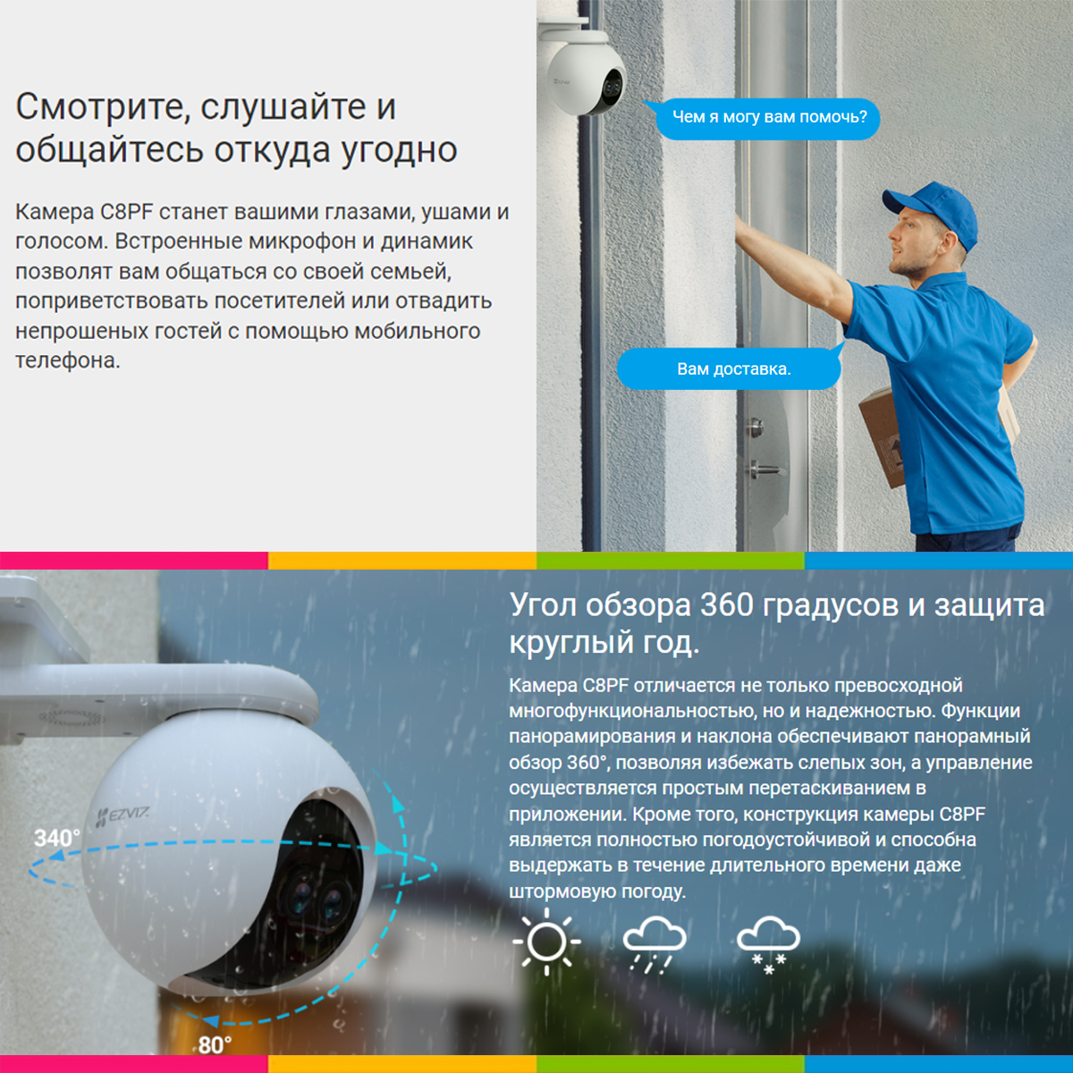 СохранитьУличная камера видеонаблюдения Wi-Fi Ezviz C8PF (2MP) интересное: