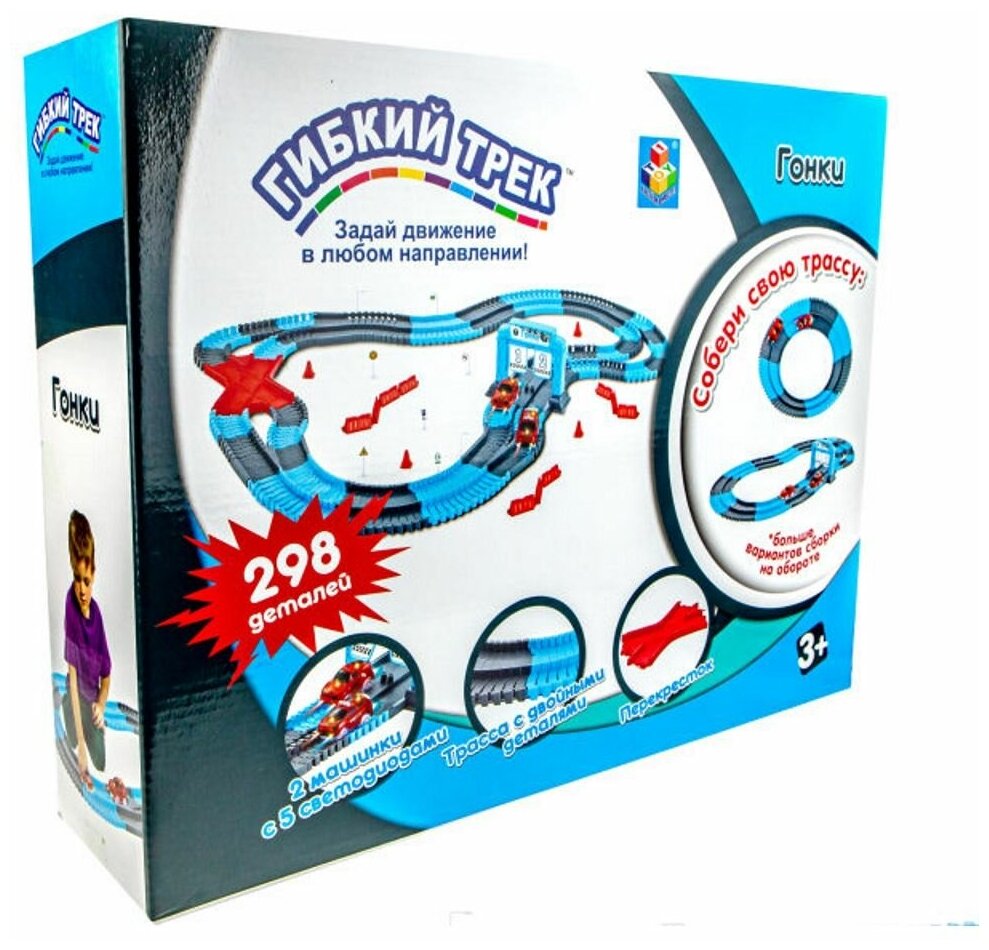 1toy гибкий трек "Гонки" 298 дет, финишные ворота, перекресток,