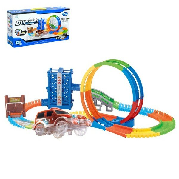 Автотрек "Магический Трек", гибкий, светится в темноте, 133 детали, лифт, мертвая петля 3418147