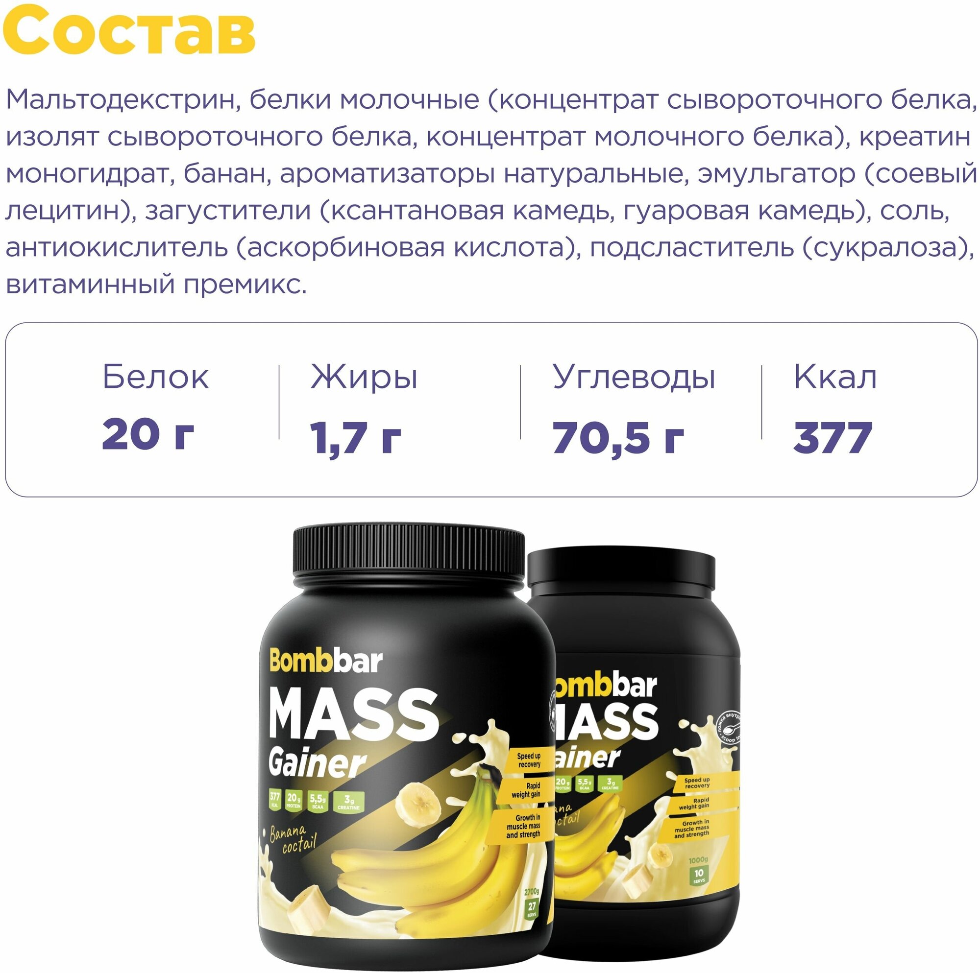 Купить Bombbar Mass Gainer (2700 гр) (банановый коктейль)