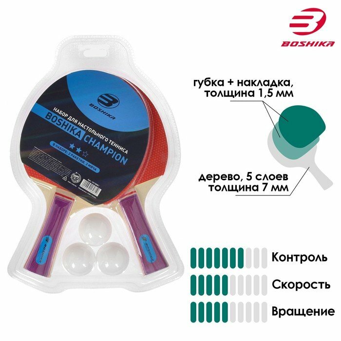 BOSHIKA Набор для настольного тенниса BOSHIKA Championship: 2 ракетки, 3 мяча, 2 звезды интересное: