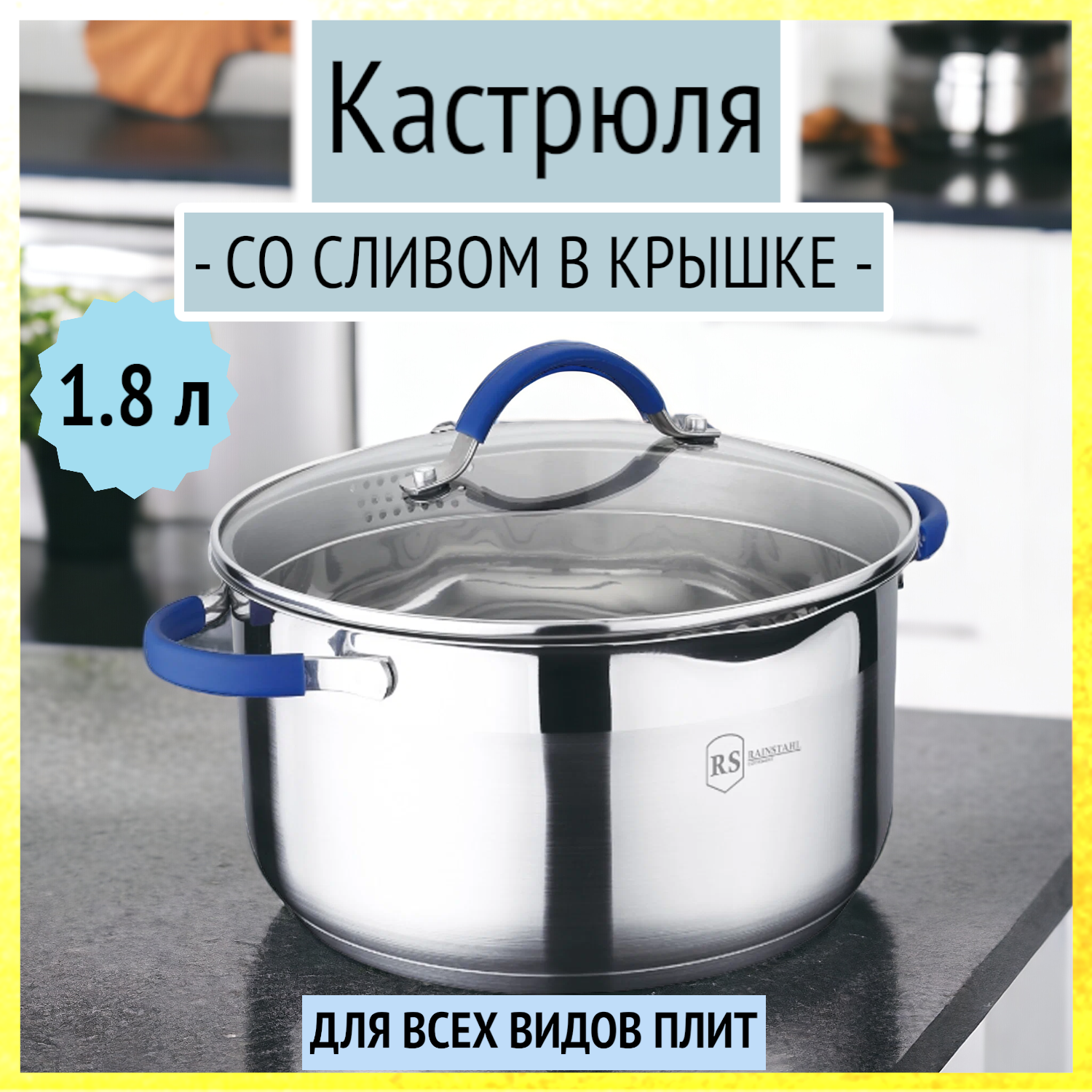 Кастрюля 1.8 л со сливом в крышке и носиком из нержавеющей стали Rainstahl, RS/CS 2105-16