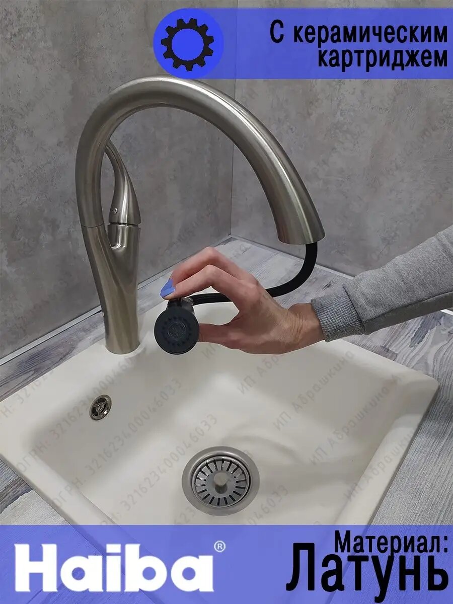 Смеситель для кухни с выдвижной лейкой Haiba HB70180