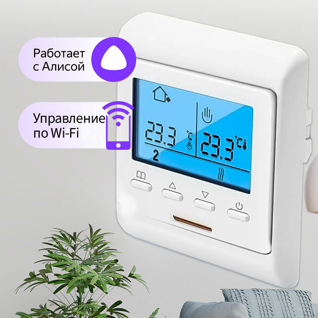 | Минусы: | Трудно напихнуть в стандартную коробку, если там повода толстые, т.к само устройство не маленькое, по сравнению с моделями теплолюкс без WiFi |