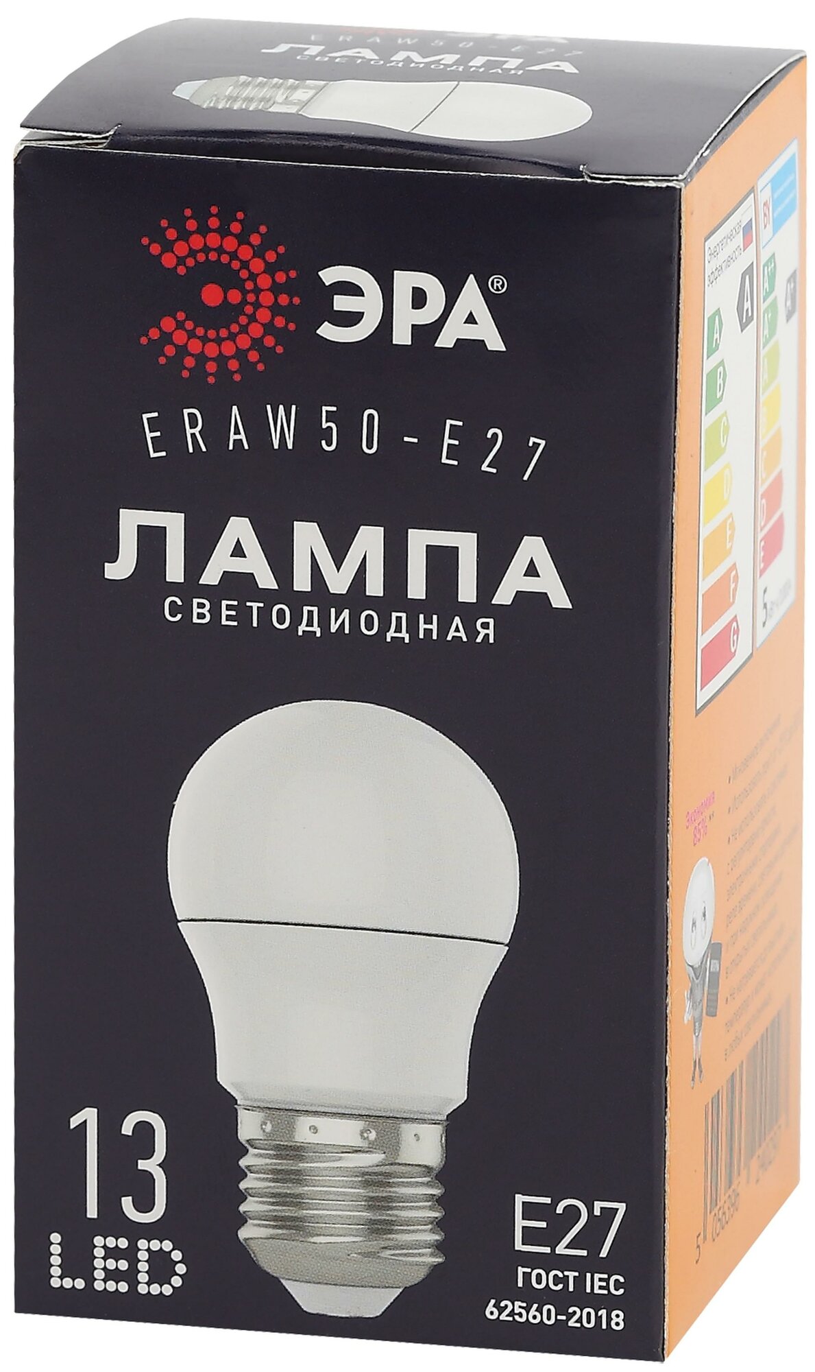 Купить ERAW50-E27 Лампочка светодиодная ЭРА STD ERAW50-E27 E27 / Е27 3Вт груша белый для белт-лайт, цена за 1 шт
