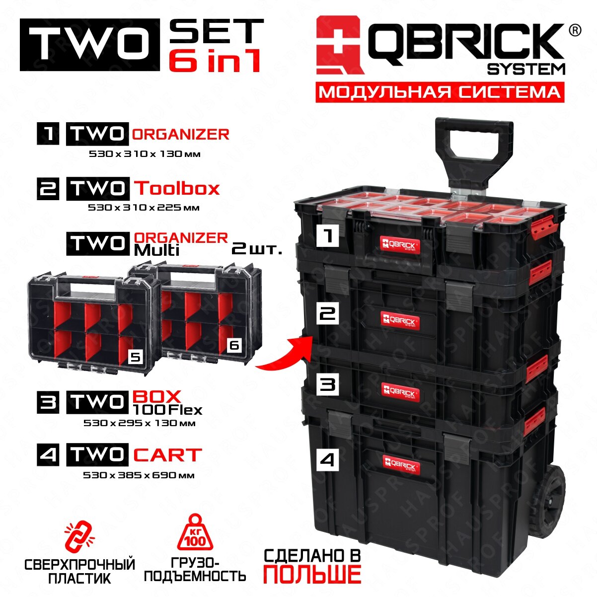 Набор Qbrick System TWO 6in1 535х390х820мм (two Cart + Toolbox + Organizer Multi (2шт) + BOX 100 Fle .