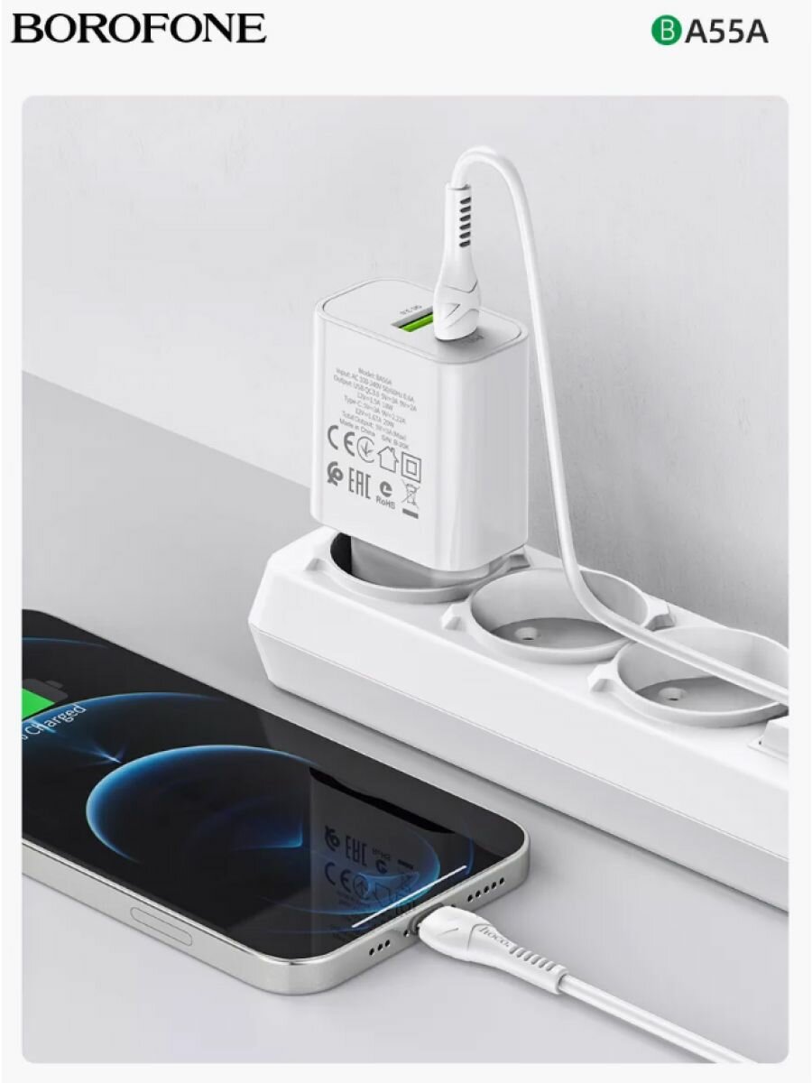 Зарядка для телефона BOROFONE BA55A Crown Speed 1xUSB QC3.0, 3A, 1хUSB-C PD, 20W (белый)