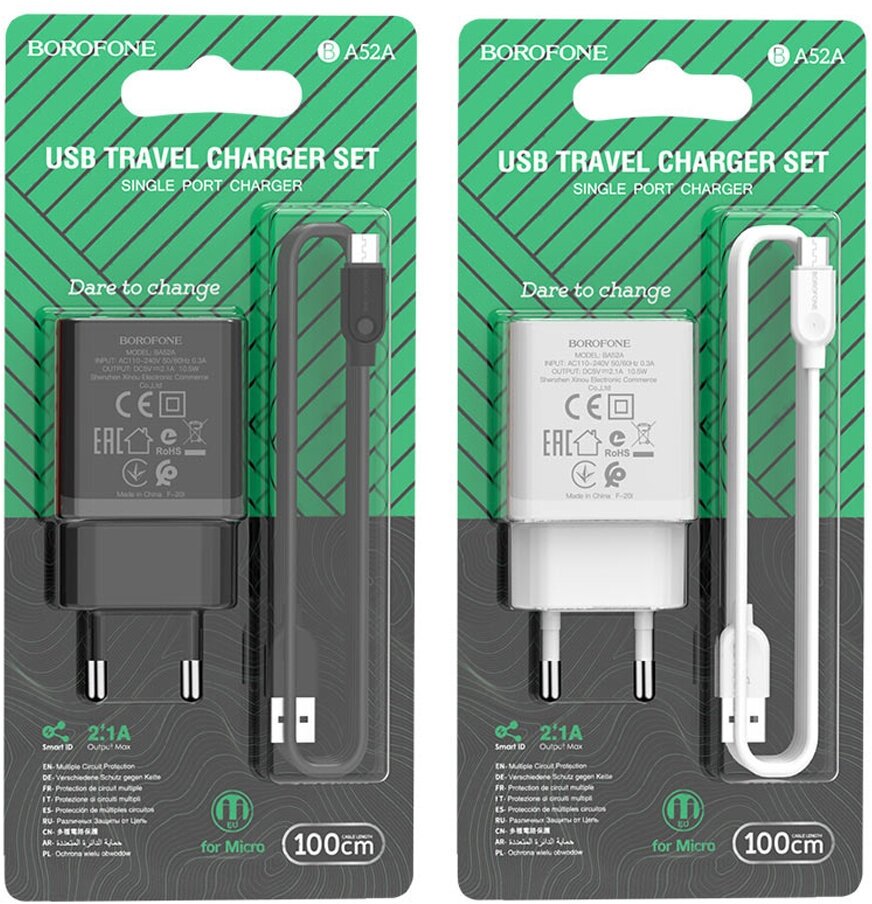 Купить Сетевое зарядное устройство Borofone Ba52a, Usb, 2.1 А, кабель microUSB, белое Borofone 9088832