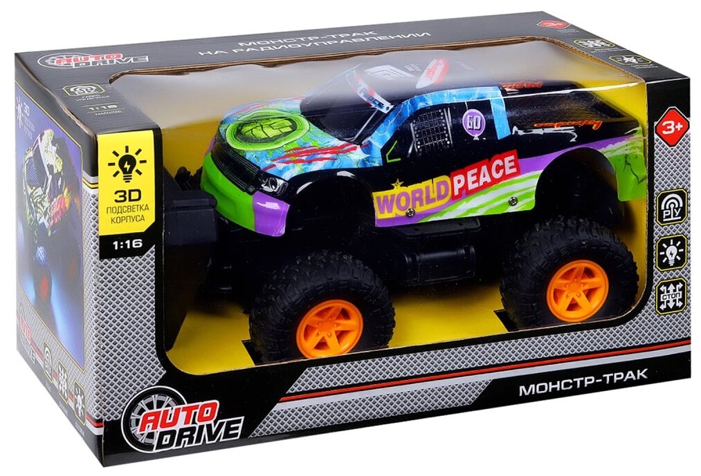 Монстр-трак р/у AUTODRIVE 1:16 с 3D подсветкой зелёный JB1168528