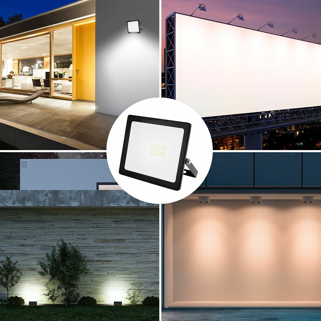 Ультратонкий светодиодный прожектор / Садово-парковый переносной фонарь уличный 30 Вт / Подвесное освещение с холодным белым цветом свечения 6500К / LED лампа светильник диодный SMD2835 2400 Лм для дачи, сада и дома настенный ударопрочный IP65 / Черный